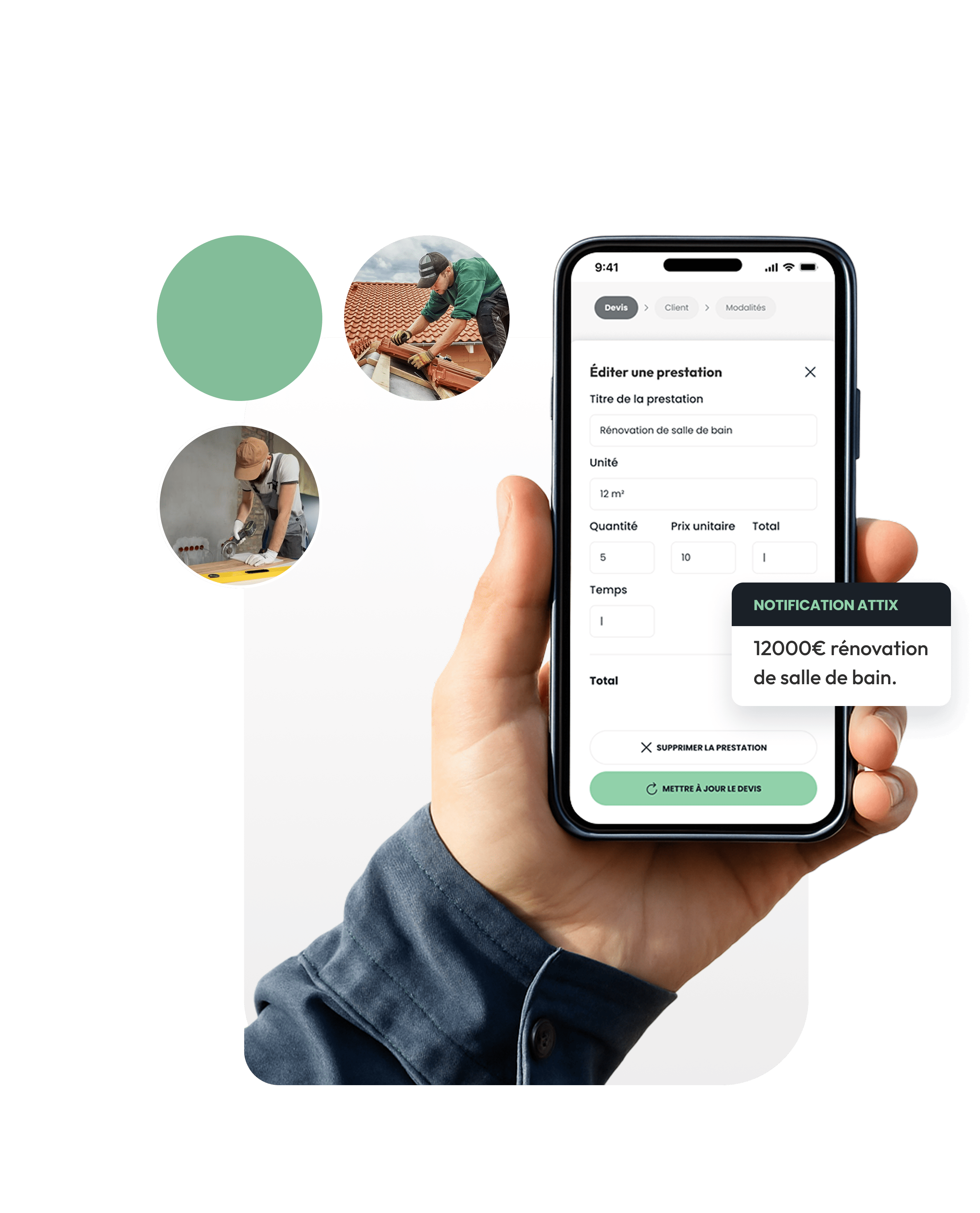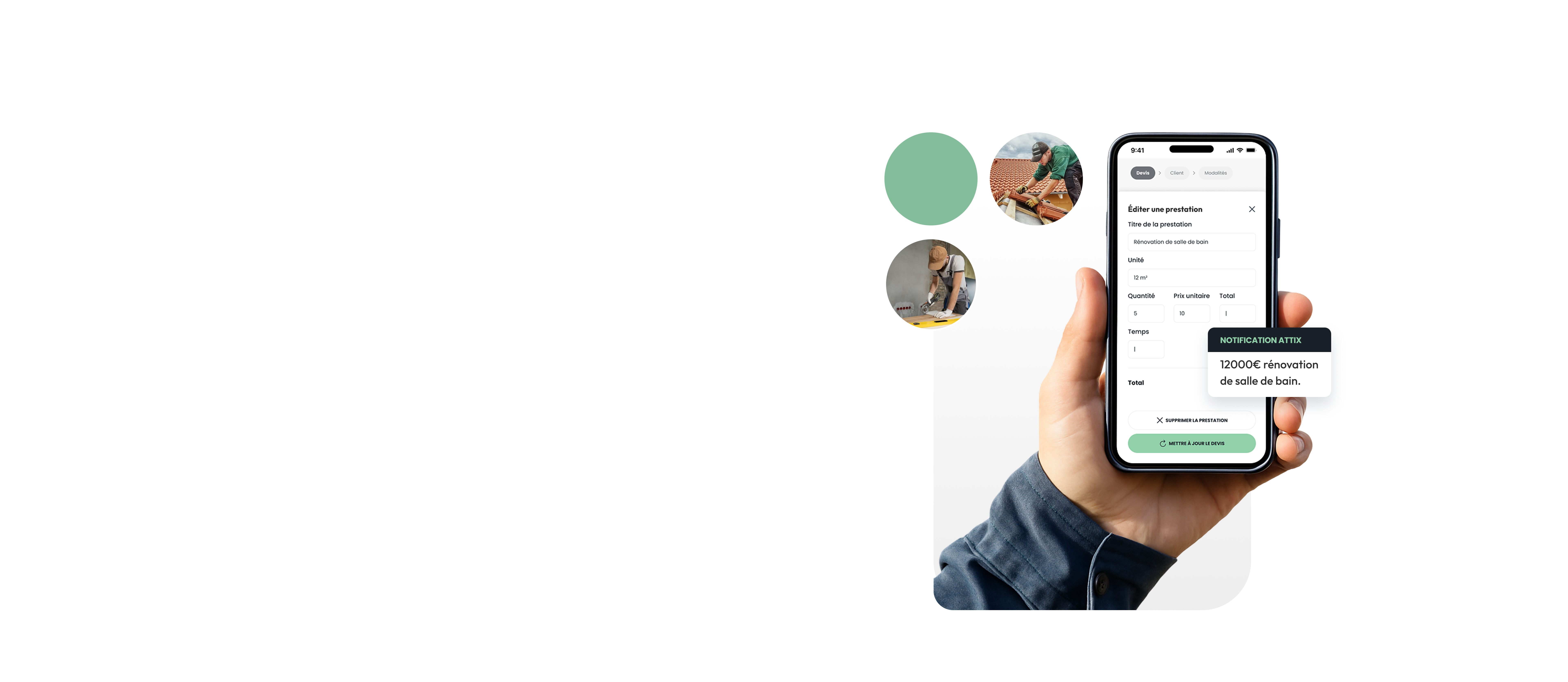 “Grâce à Attix, je gagne environ 2 heures par devis. Je peux maintenant me concentrer sur les chantiers et même prendre plus de clients. C’est ultra simple à utiliser, même sans être un ingénieur.”