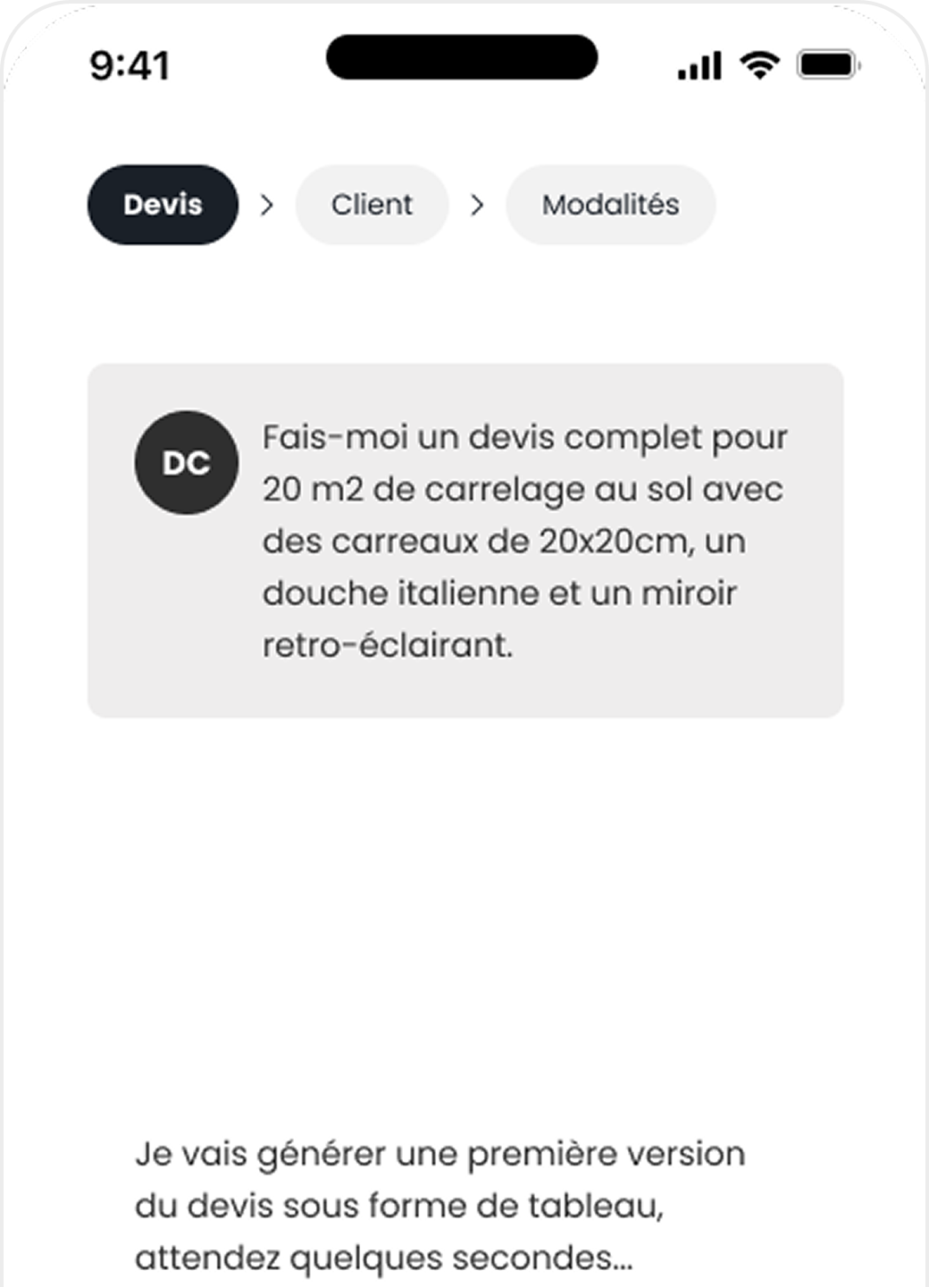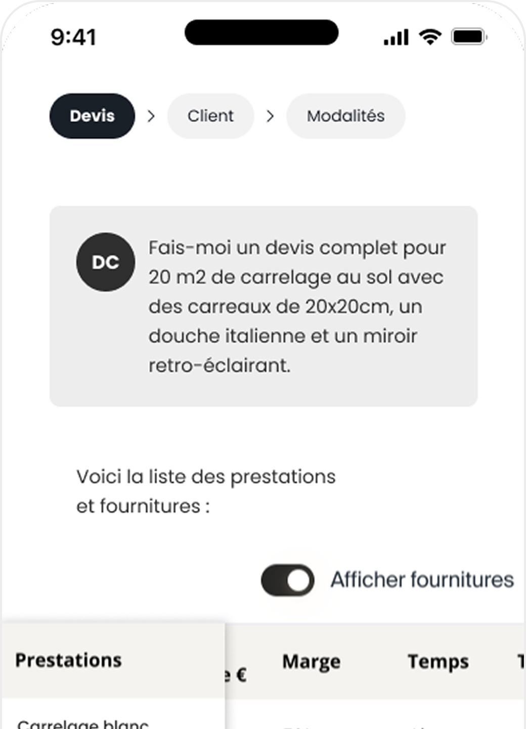 L’IA génère le devis et vous le retouchez si besoin.